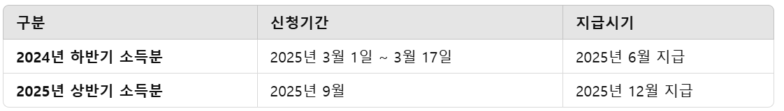 ✔️ 하반기 소득(7~12월): 다음 해 3월 신청 → 6월 지급