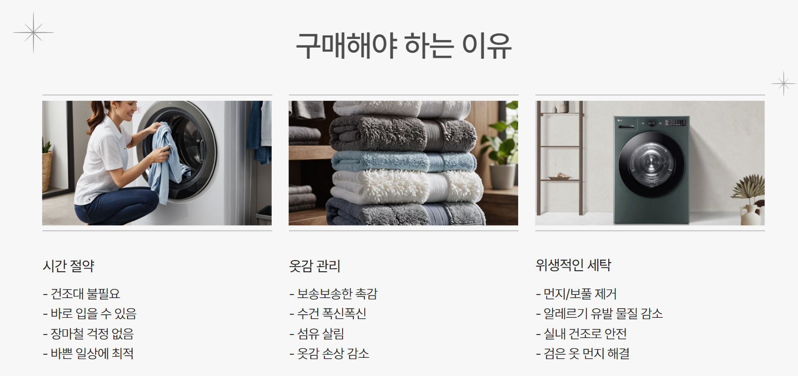 ✔️ 다양한 세탁 및 건조 코스 제공 – 의류별 맞춤 관리 가능