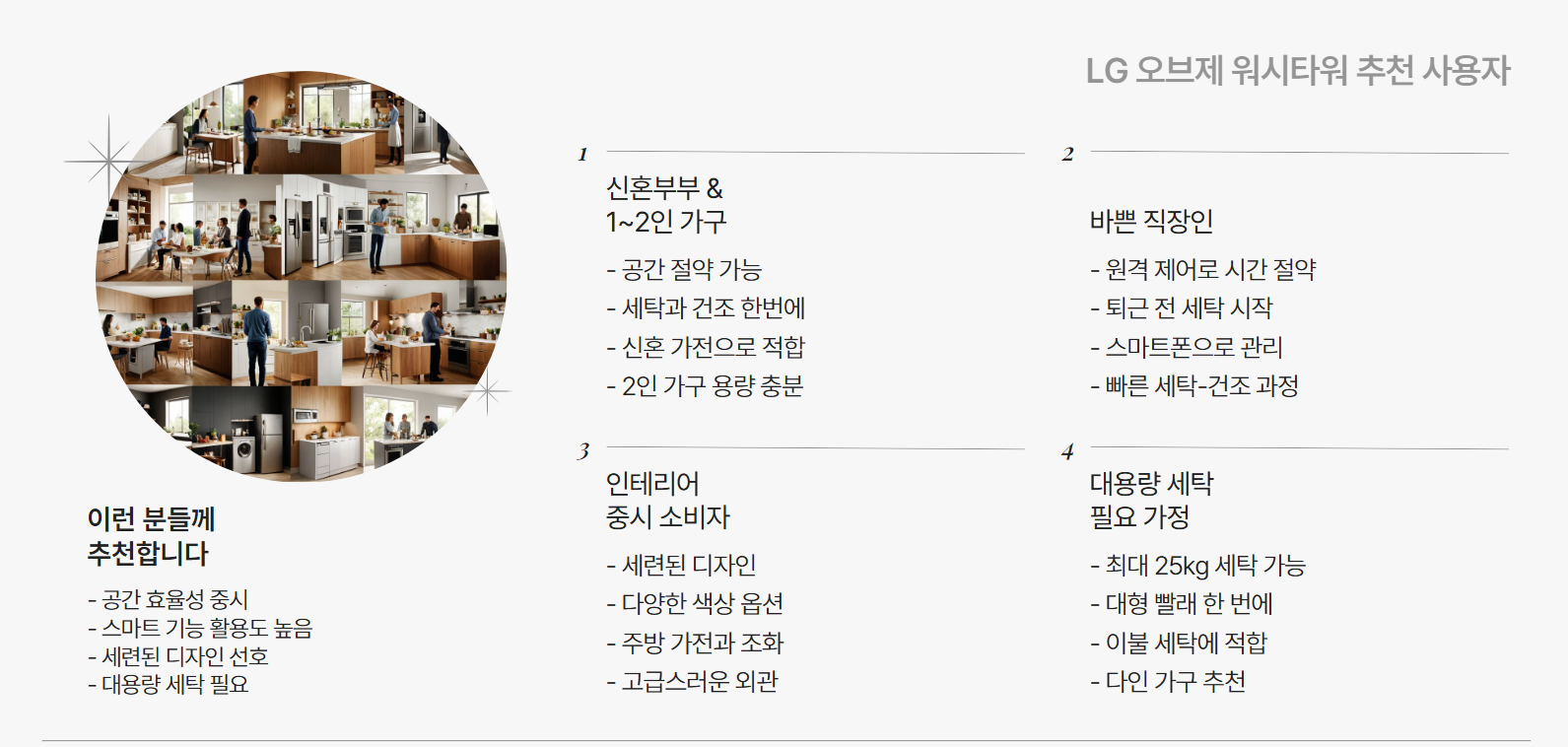 엘지 오브제 워시타워는 다음과 같은 사용자에게 특히 추천됩니다.