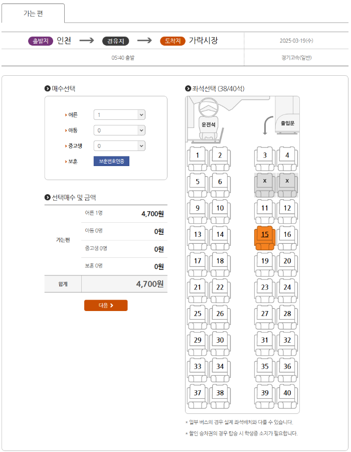 1️⃣ 출발 시간 선택 후 좌석 예약