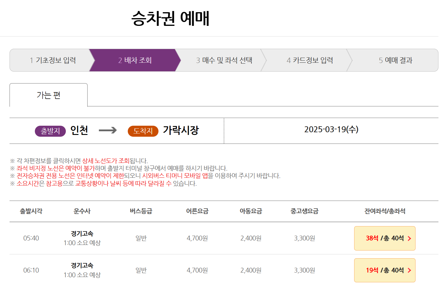 5️⃣ 출발 가능한 시간과 운행 정보를 확인