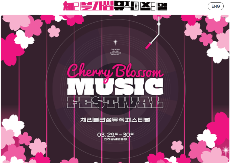 뮤직 & EDM 페스티벌 3월 29일 ~ 30일 진해공설운동장에서는 체리블라썸 뮤직페스티벌이 열립니다.